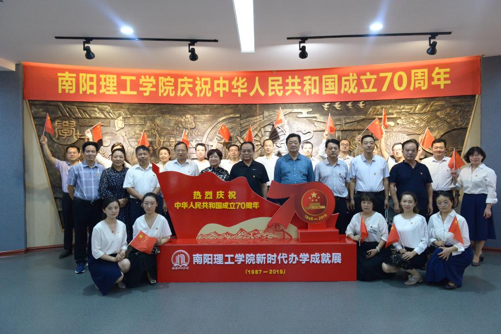 9月30日上午,校党委书记邢勇、副书记秦鹏鸣、副校长肖泽昌、张铟、张世海、纪委书记许建辉、工会主席周礼春等在校史馆参观“奋进的南工更出彩-南阳理工学院庆祝新中国成立70周年新时代办学成就展”。校党政办公室、党委组织部、宣传部、统战部等部门负责人陪同。