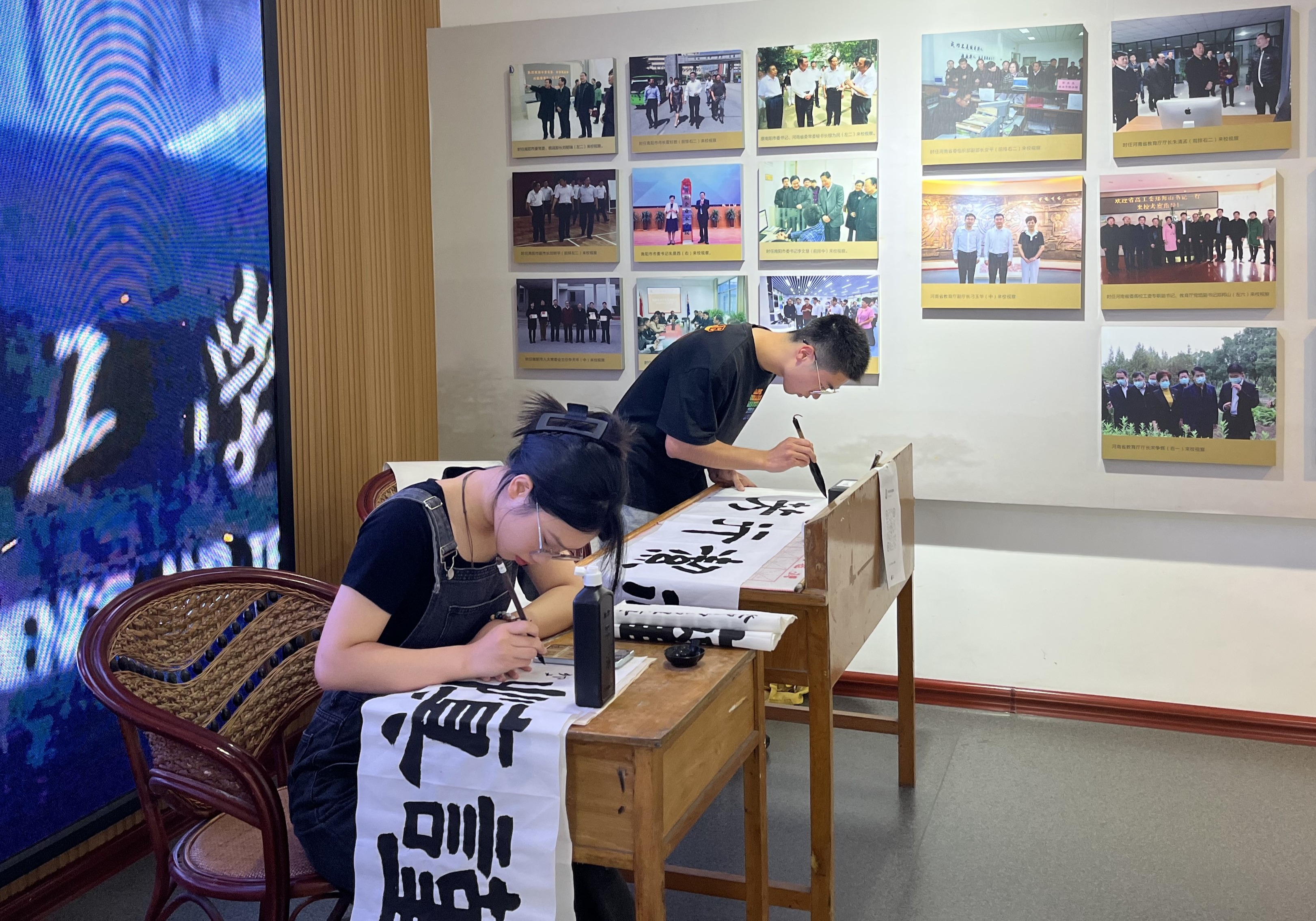 参观期间档案与校史馆为新生采集了班级合照纪念,学校书法协会为每个班级赠送了书法作品。