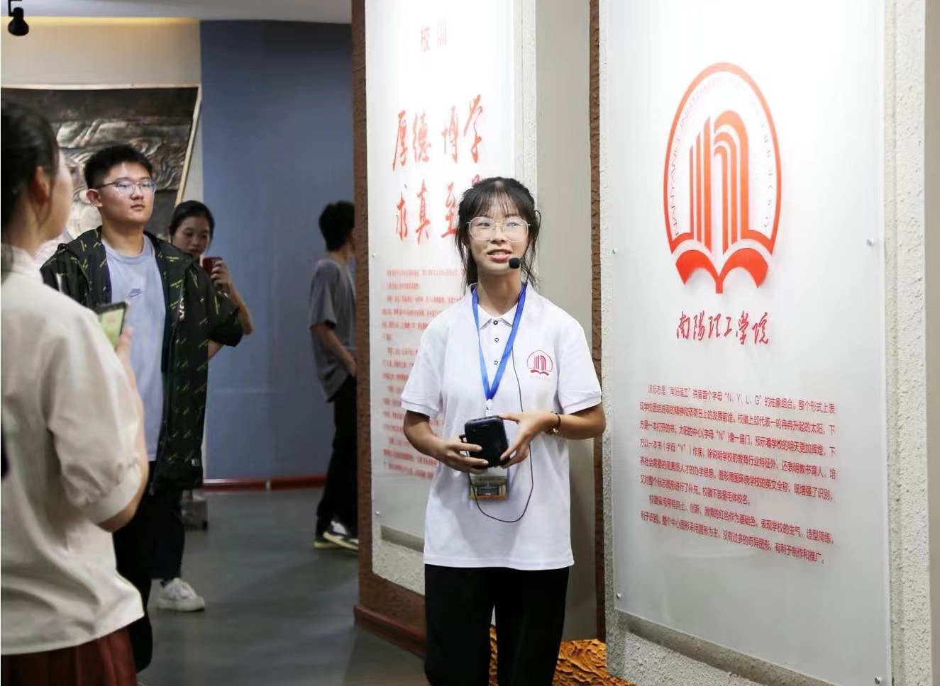 在学生讲解员的引领下,同学们近距离感知了学校全景沙盘、南阳文化浮雕,参观了序厅、南工薪火、逐日之旅、时代风化等展厅,分别从办学理念、发展创新历史、领导关怀、教学科研、荣誉和奖励等方面,了解学校建设与发展历程。